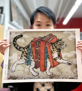 SOLD OUT: NEW: limited edition CHARITY print The Cat Who Saved Books $100.00