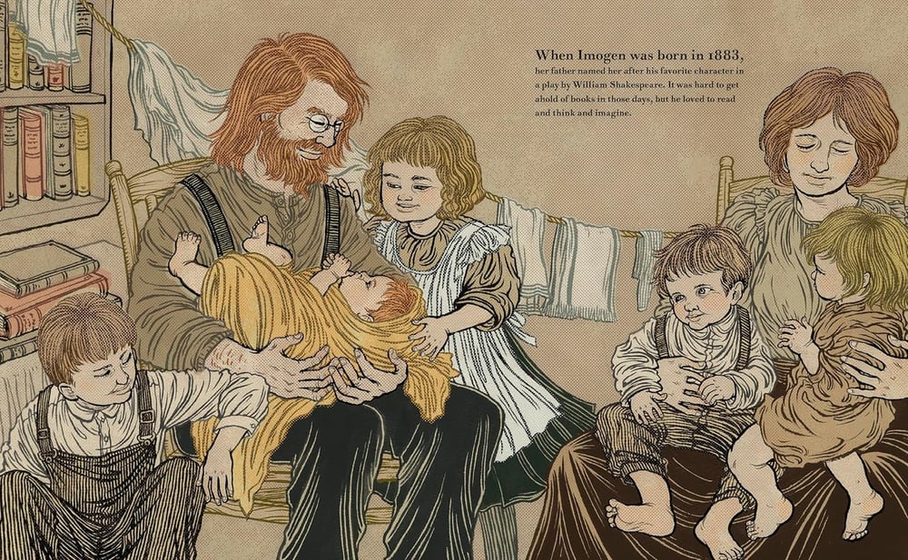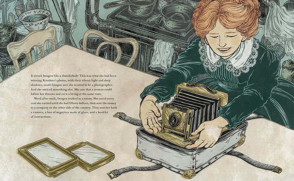 Imogen Cunningham loved to observe the world. She noticed the colors in the woods outside her house and how light and shadows moved between the trees. She tried to capture this beauty on paper with pencils, but something was missing. One day she read about a woman in Paris who earned a living as a photographer, and she knew she was meant to do the same. With the support of her loving father, she then began her journey to become one of the most important photographers in America.